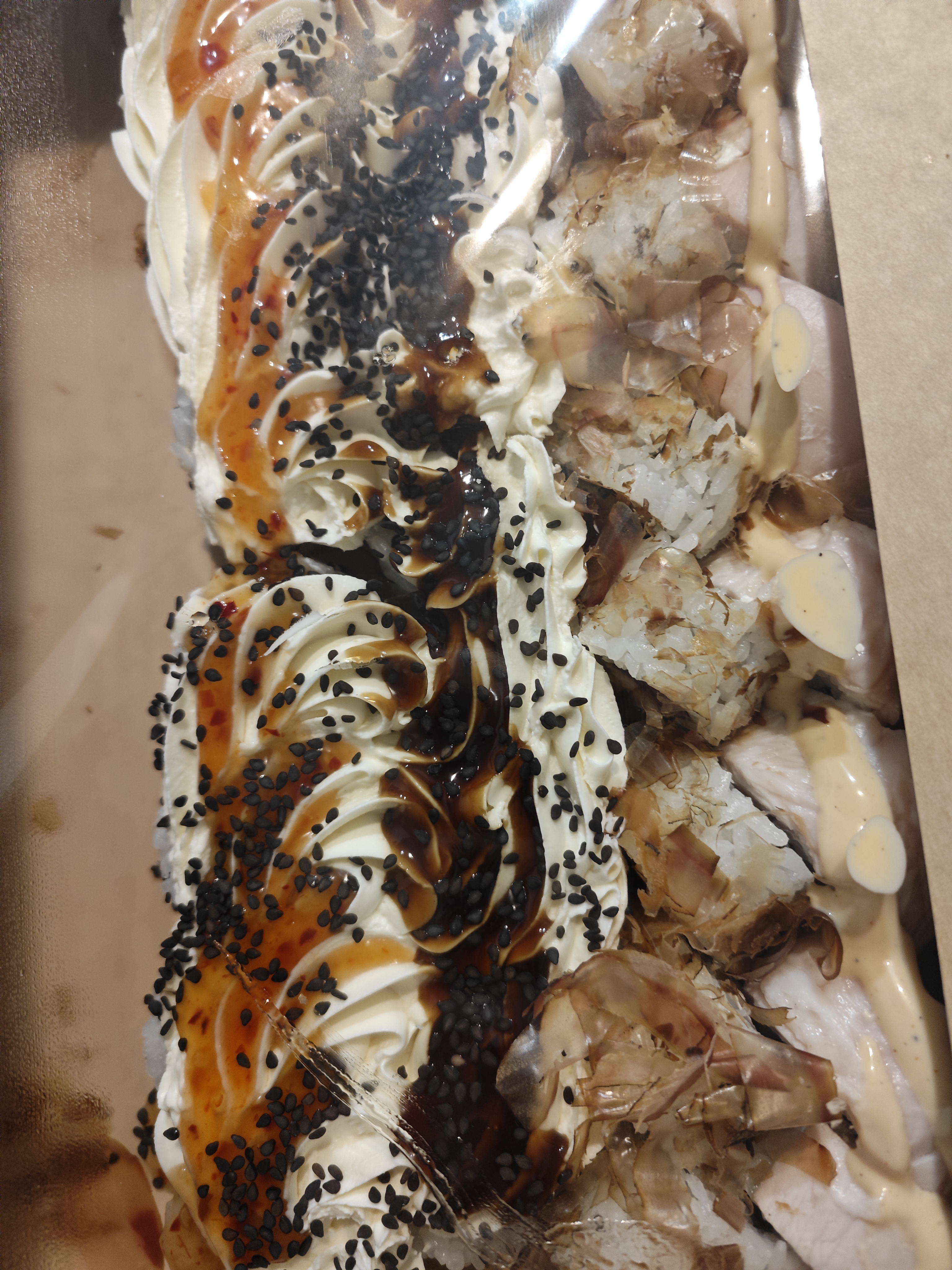 Но этот сет нас покорил....такие....ужасные суши мы еще не ели.Рис склеившийся,начинку пытались найти всей семьей,так и не удалось!