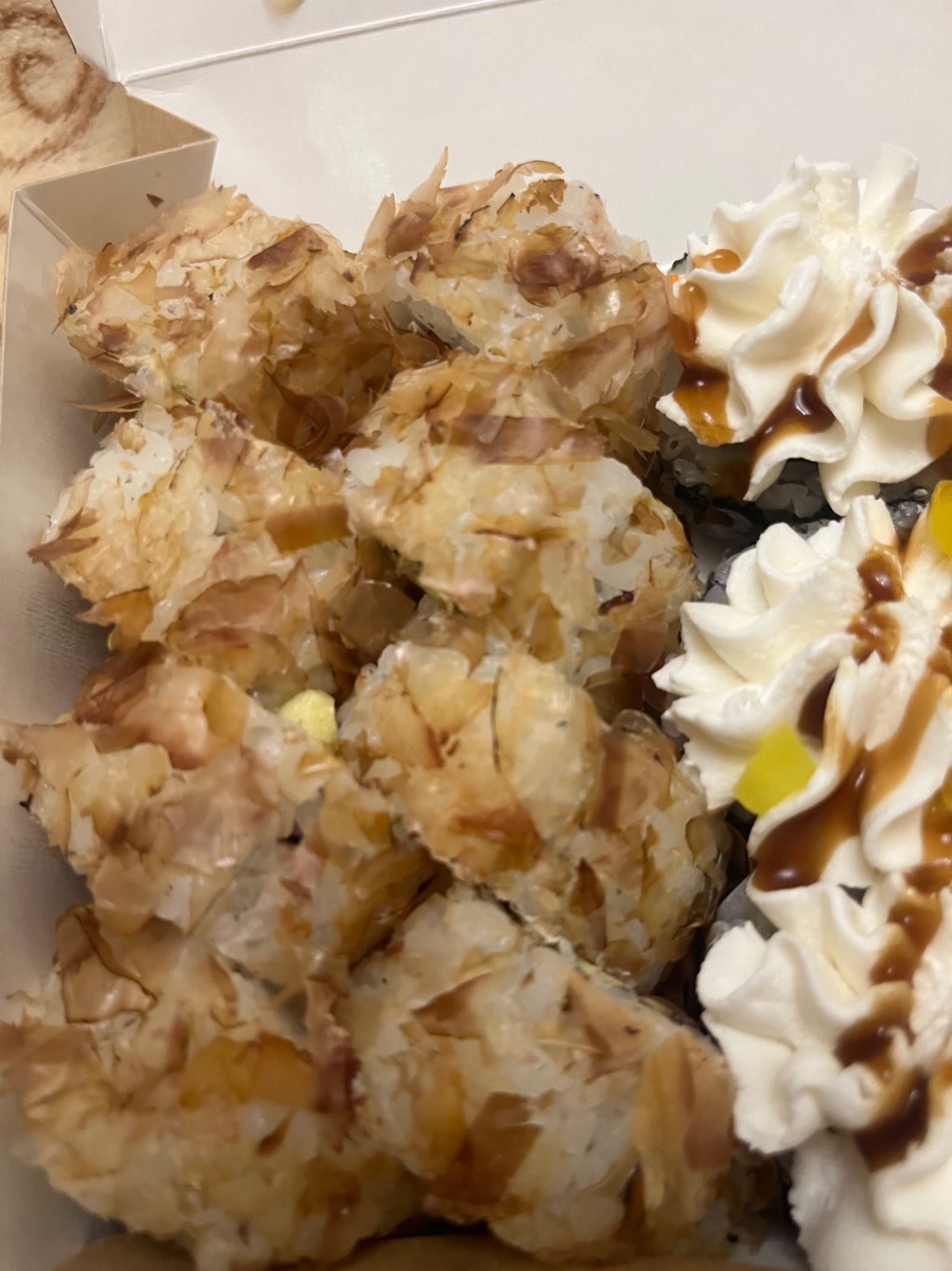 Отравился заказанными суши. Роллы хуже среднего, рыба совсем не чувствуется по вкусу, причём в некоторых роллах, где должна быть рыба, её и близко нет, рис пресный и переваренный. Жаль, что 1 звезда это минимальная оценка. А так 0/10.